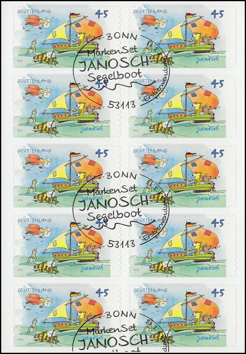 FB 27 Janosch: Segelboot, Folienblatt 10x2995, Erstverwendungsstempel Bonn1.3.13