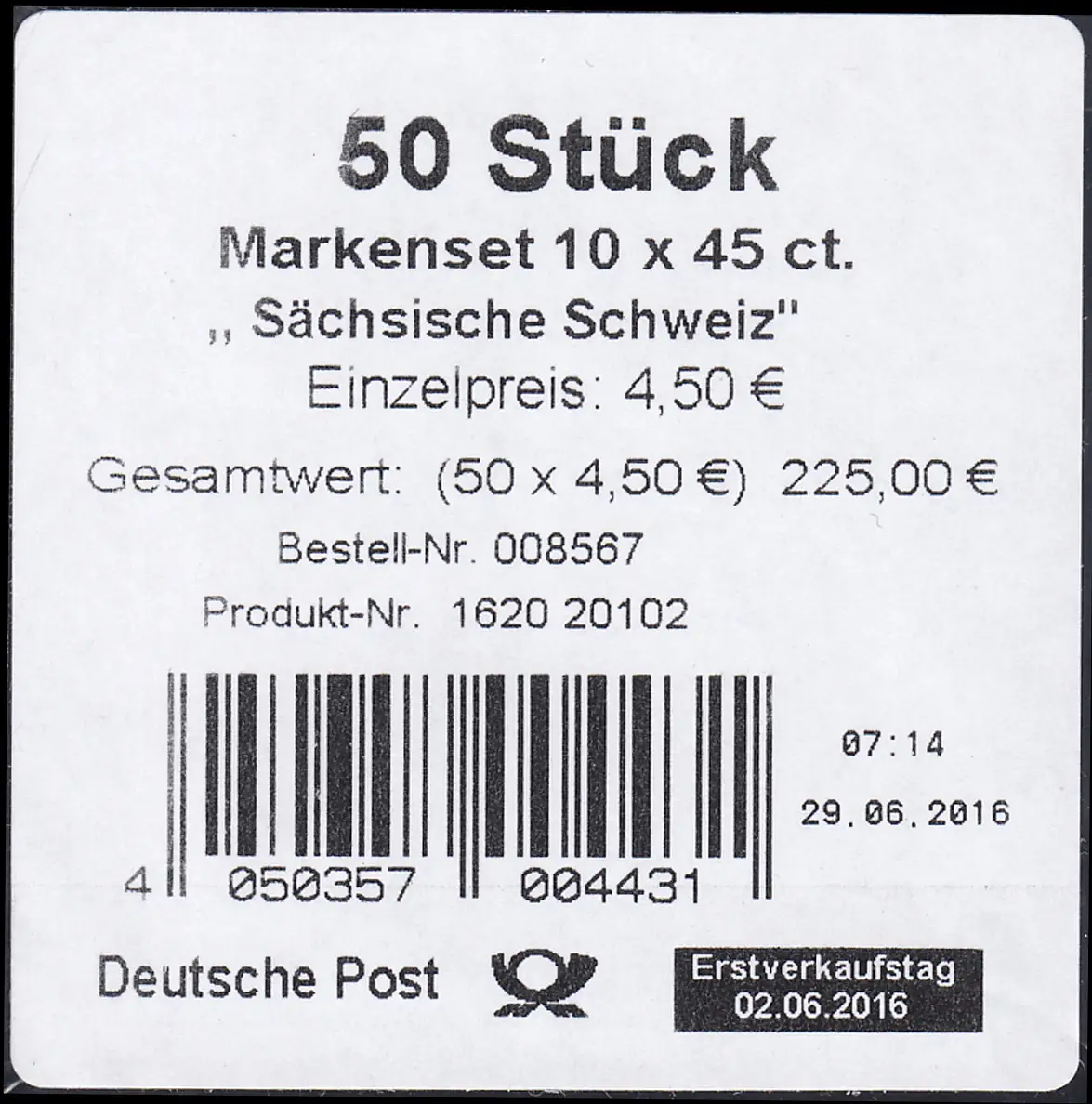 FB 59 Sächsische Schweiz, Folienblatt-BANDEROLE ohne DHL-Code