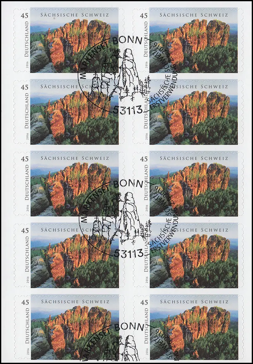 FB 59 Sächsische Schweiz, Folienblatt mit 10x3251, EV-O Bonn 2.6.2016