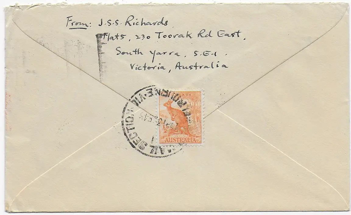 FDC - air Mail Melbourne nach Rotterdam, 1948, rückseitig Känguru