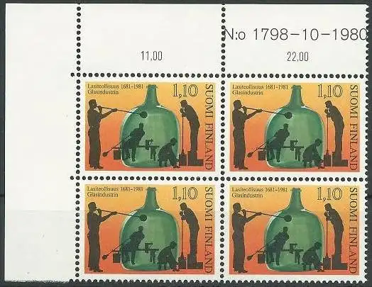 FINNLAND 1981 Mi-Nr. 879 ** MNH Eckrand-Viererblock