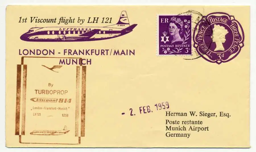 1st Visconcent Flight by LH 121 LONDON - FRANKFURT - MUNICH, Turboprop B14