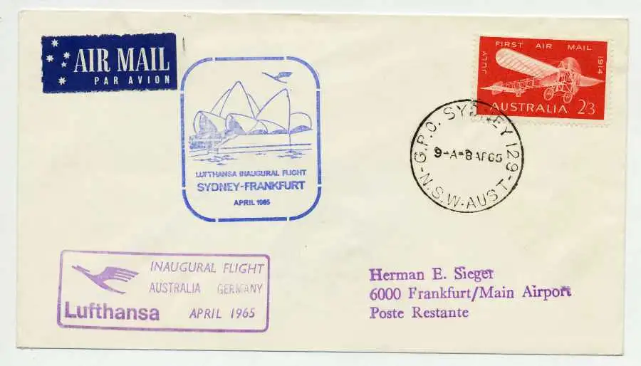 FLUGPOST ALLE WELT Nr LUFTHANSA FFM SYDNEY BRIEF 743092
