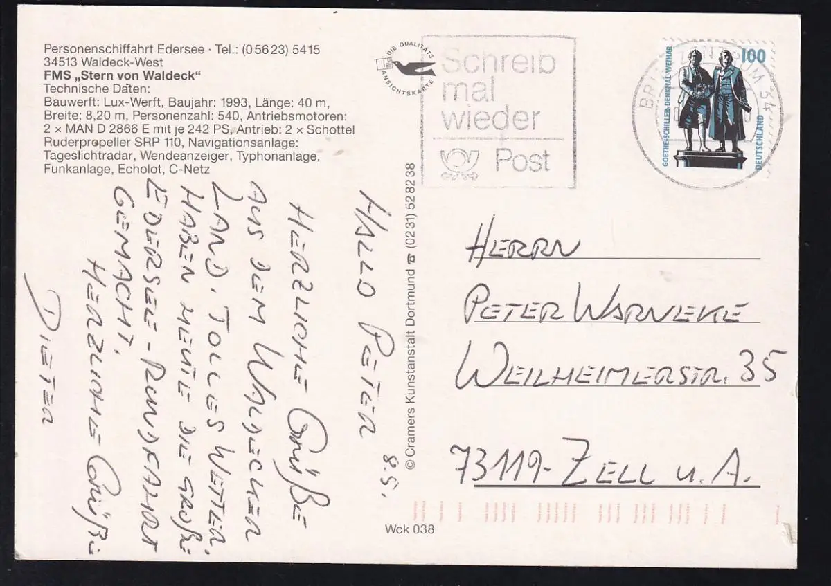 zwei sehr schöne Bahnpostbelege, einmal HUSUM-GARDING von 1916 - ohne Zugnummer aufgrund der Furcht vor feindlicher Spionage - und ERFURT-EISENACH von 1965. Vielen Dank, bin mit der Lieferung sehr zufrieden.