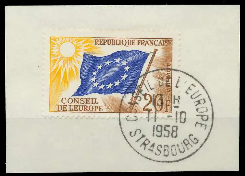 20 Fr. Wert aus der Ausgabe Dienstmarken für den Europarat in Zeichnung Europafahne Ausgabe von 1958