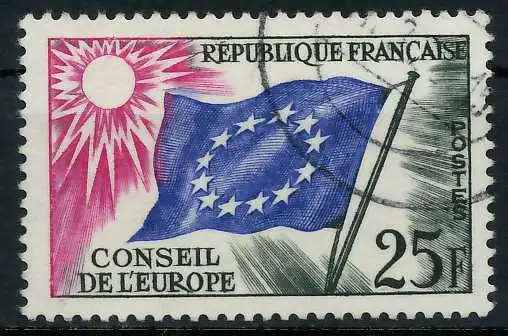 25 Fr. Wert aus der Ausgabe Dienstmarken für den Europarat in Zeichnung Europafahne Ausgabe von 1958