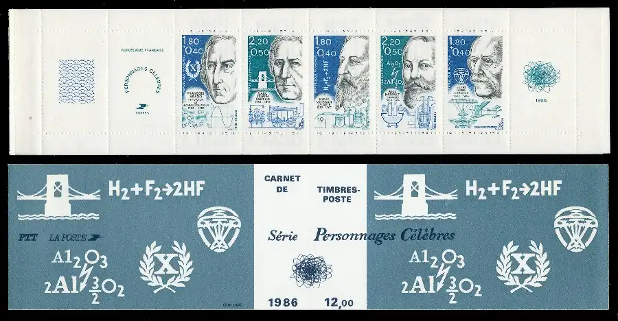 Markenheftchen Persönlichkeiten mit Kleinbogen der Nr. 2532-2536, gefaltet, Arago, Moissan, Fabre, Seguin, Heroult (MichelNr.: 2532, 2533, 2534, 2535, 2536)