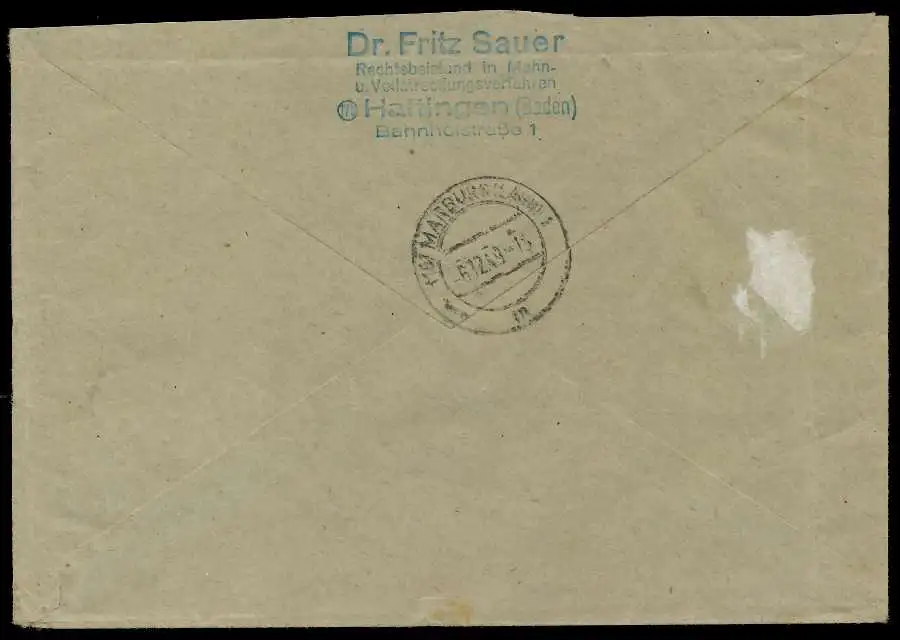 30 Pfg UPU im 4er Block auf Fensterkuvert, rückseitig Absenderstempel und Stempel Marburg. Marken vorderseitig entwertet mit Gummilangstempel Marburg ???