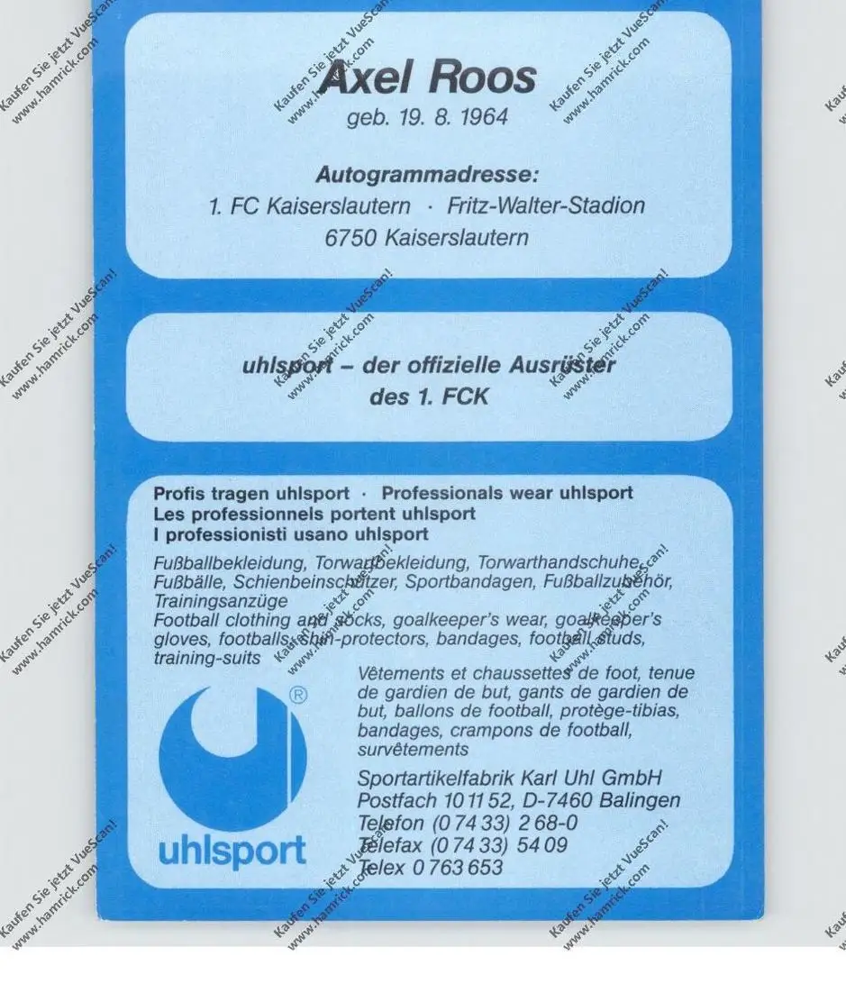 FUSSBALL - 1. FC KAISERSLAUTERN - AXEL ROOS, Autogramm