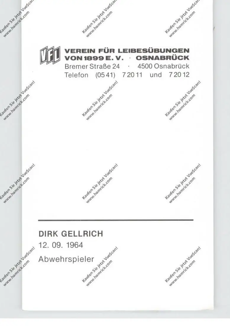 FUSSBALL - VfL OSNABRÜCK, DIRK GELLRICH, Autogramm