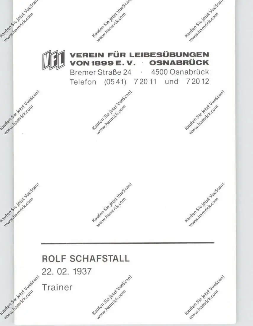 FUSSBALL - VfL OSNABRÜCK, ROLF SCHAFSTALL, Autogramm