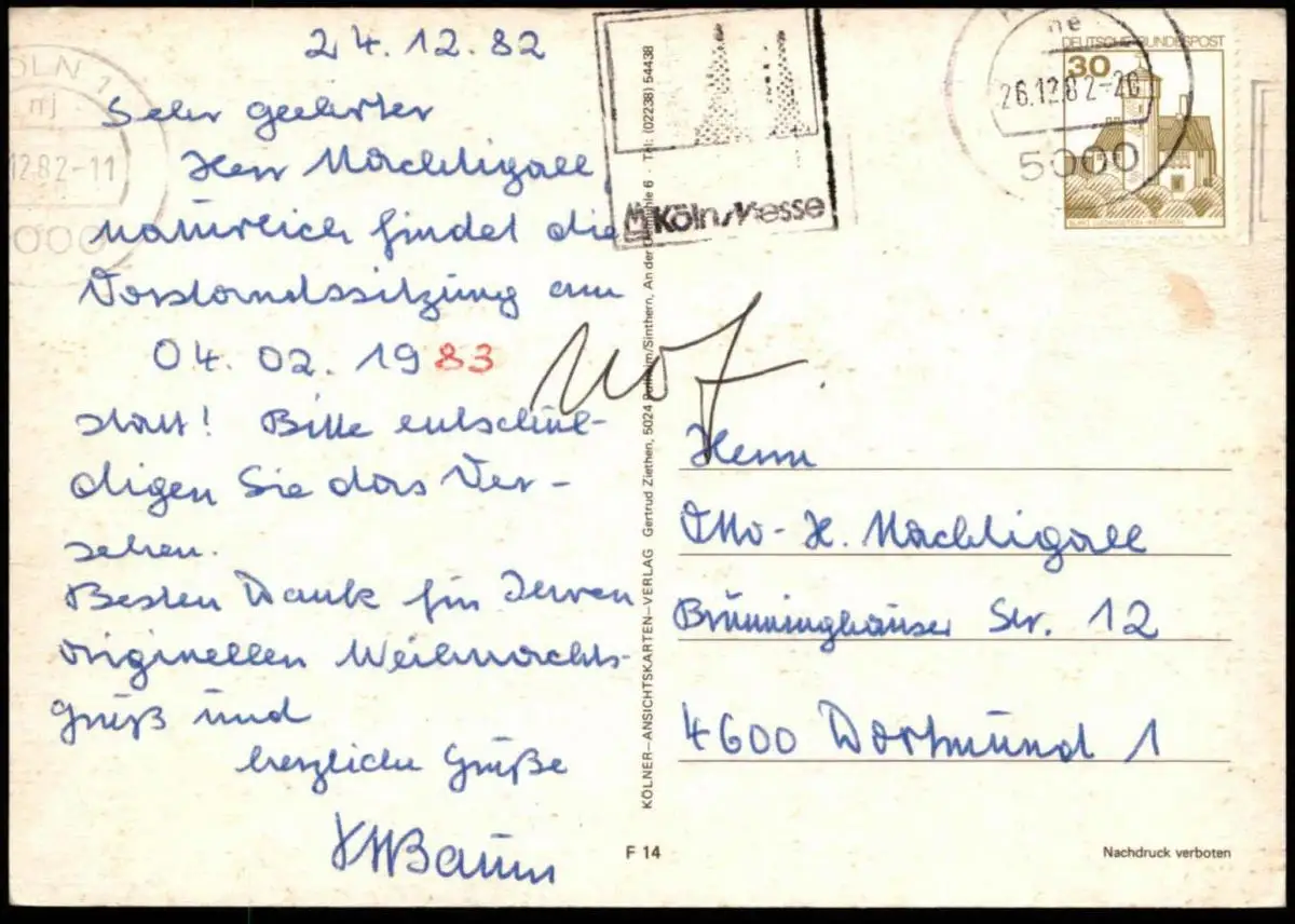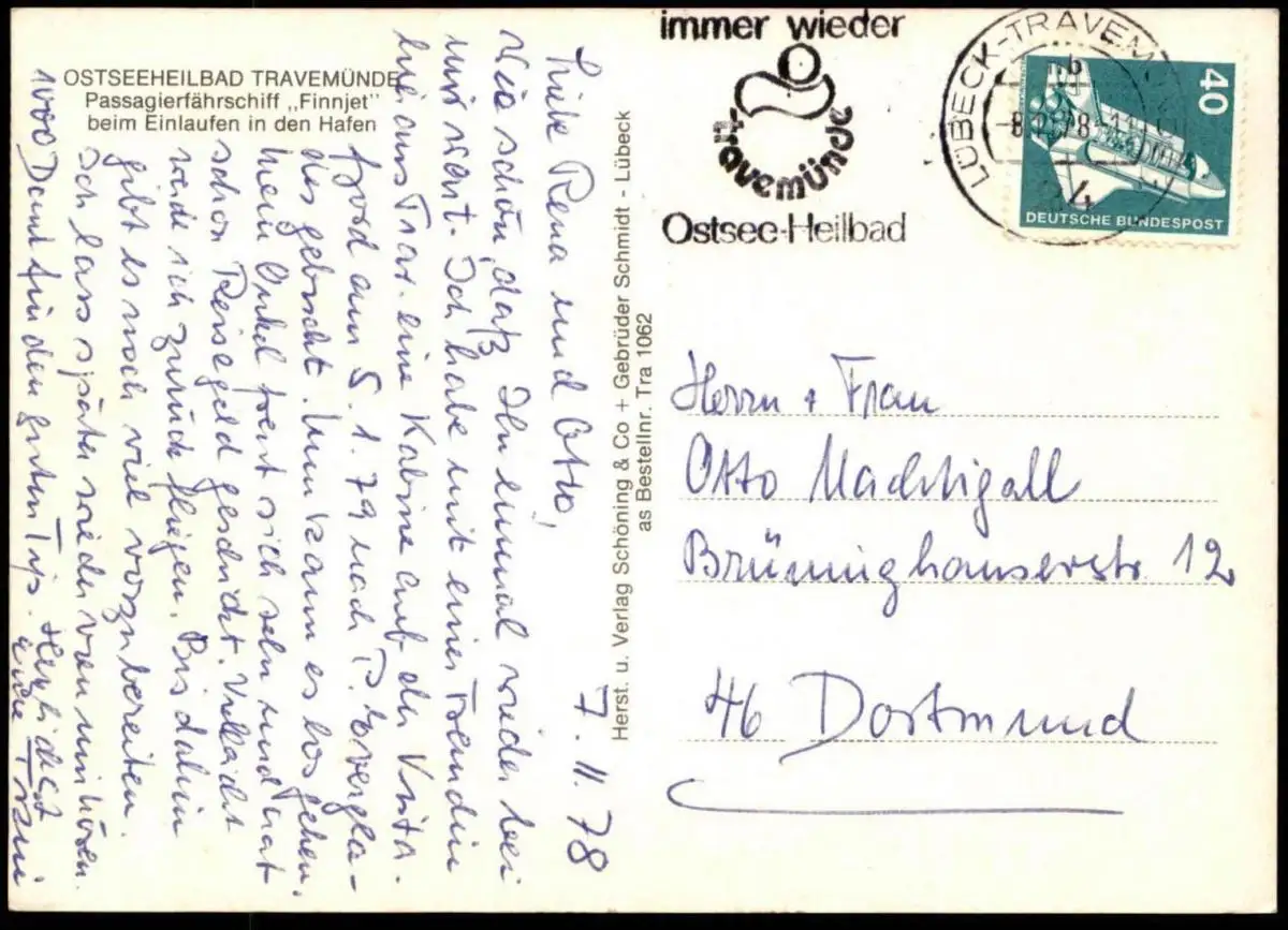 Gelaufen: nein / nein, beschrieben / 08.11.1978 mit Stempel Lübeck nach Dortmund / 26.12.1982 mit Stempel Köln nach Dortmund / nein