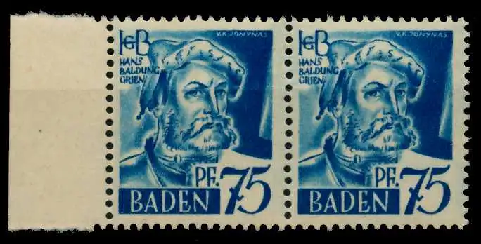 75 Pfg Freimarken Persönlichkeiten und Ansichten aus Baden 1. Ausgabe, waagerechtes Typenpaar