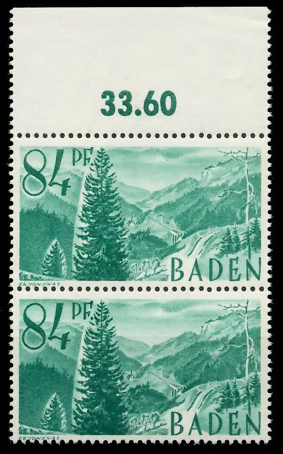 84 Pfg Freimarken Persönlichkeiten und Ansichten aus Baden 1. Ausgabe, senkrechtes Typenpaar