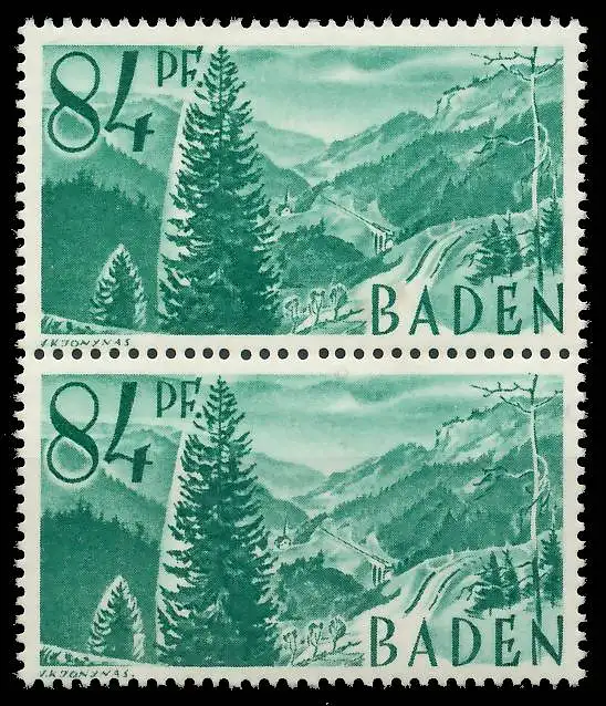 84 Pfg Freimarken Persönlichkeiten und Ansichten aus Baden 1. Ausgabe, senkrechtes Typenpaar