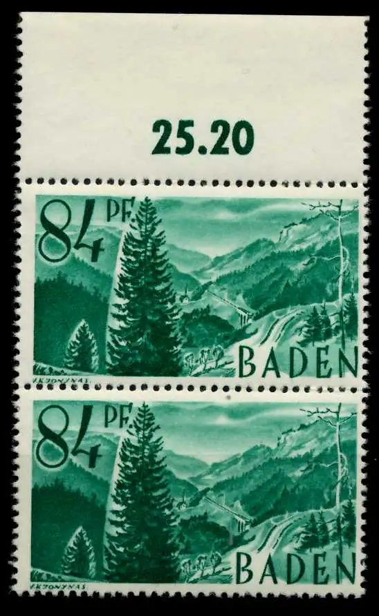 84 Pfg Freimarken Persönlichkeiten und Ansichten aus Baden 1. Ausgabe, senkrechtes Typenpaar mit Oberrand