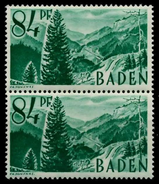 84 Pfg Freimarken Persönlichkeiten und Ansichten aus Baden 1. Ausgabe, senkrechtes Typen-Paar