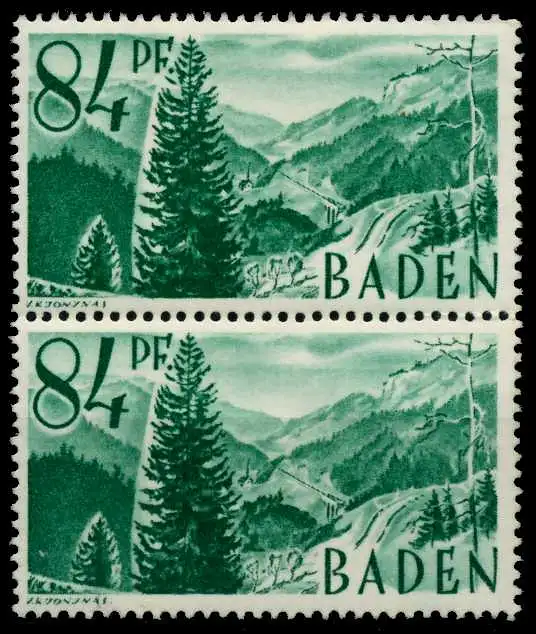 84 Pfg Freimarken Persönlichkeiten und Ansichten aus Baden 1. Ausgabe, senkrechtes Typen-Paar