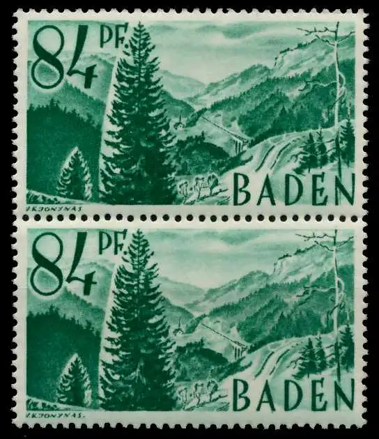 84 Pfg Freimarken Persönlichkeiten und Ansichten aus Baden 1. Ausgabe, senkrechtes Typen-Paar