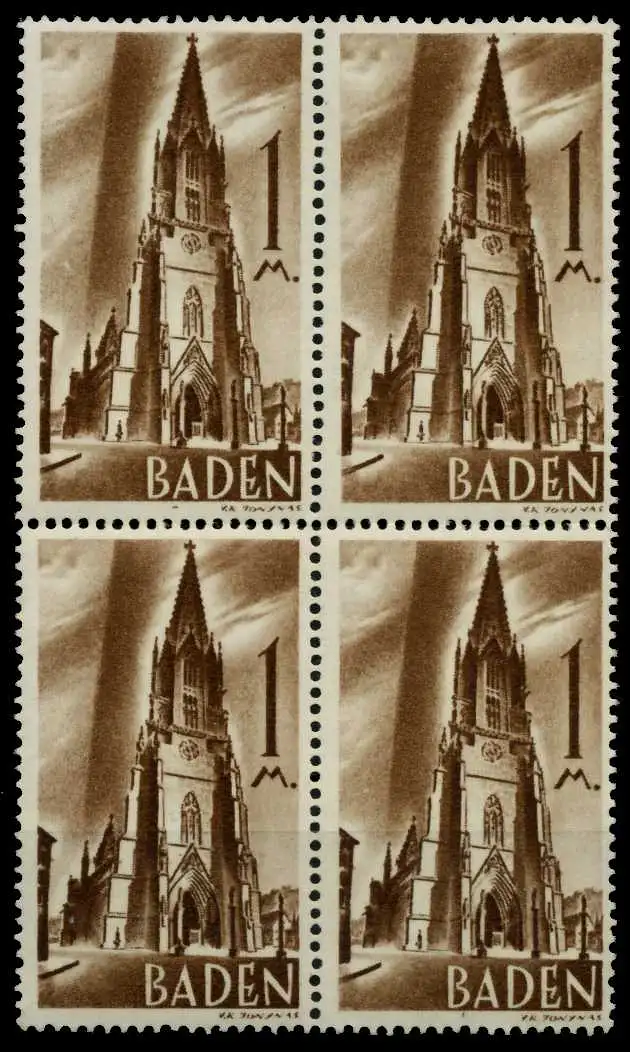 1 Mark Freimarken Persönlichkeiten und Ansichten aus Baden 1. Ausgabe, jeweils Typenpaare im Viererblock
