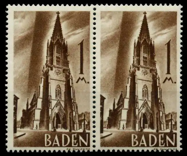 1 Mark Freimarken Persönlichkeiten und Ansichten aus Baden 1. Ausgabe, Typenpaar