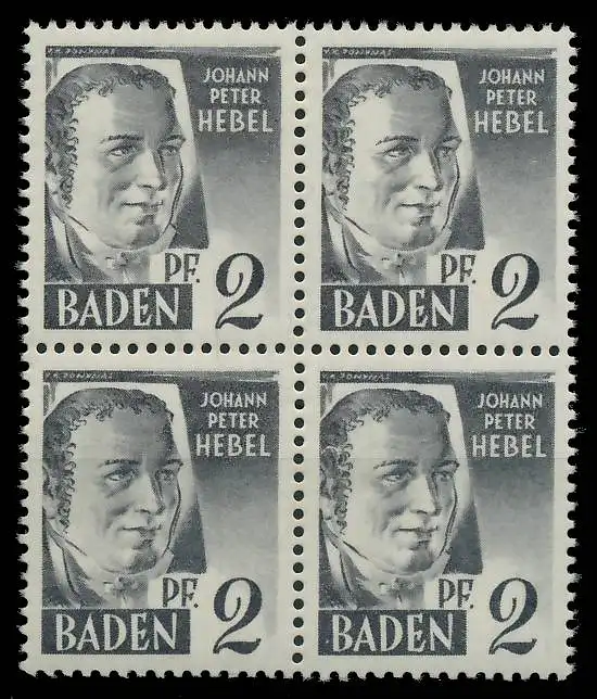 2 Pfg Freimarken Persönlichkeiten und Ansichten aus Baden 1. Ausgabe, 4er Block aus Reihe 7 und 8
