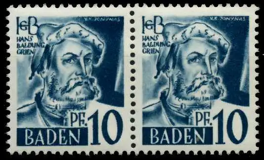 10 Pfg Freimarken Persönlichkeiten und Ansichten aus Baden 1. Ausgabe, waagerechtes Typenpaar