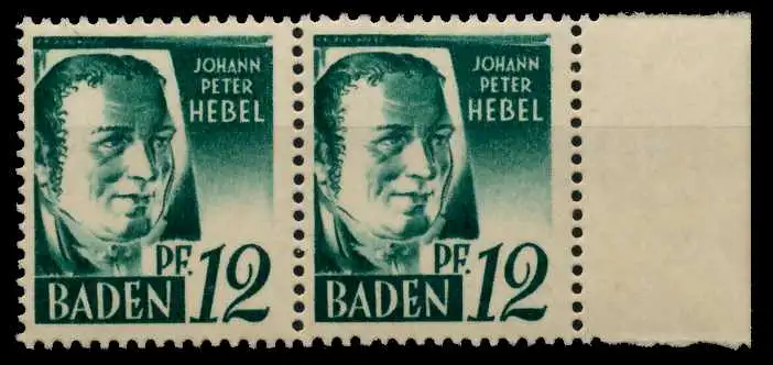12 Pfg Freimarken Persönlichkeiten und Ansichten aus Baden 1. Ausgabe, dickes gelblich-graues rauhes Papier, waagerechtes Typenpaar (Type I und II)