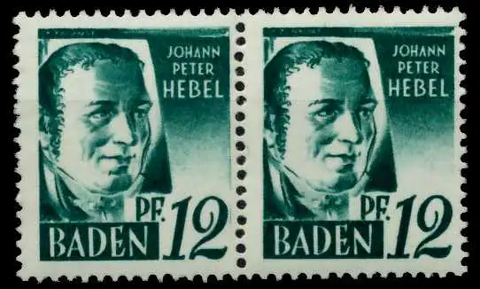 12 Pfg Freimarken Persönlichkeiten und Ansichten aus Baden 1. Ausgabe, dickes gelblich-graues rauhes Papier, Typenpaar