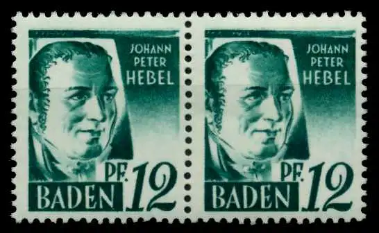 12 Pfg Freimarken Persönlichkeiten und Ansichten aus Baden 1. Ausgabe, dickes gelblich-graues rauhes Papier, Typenpaar