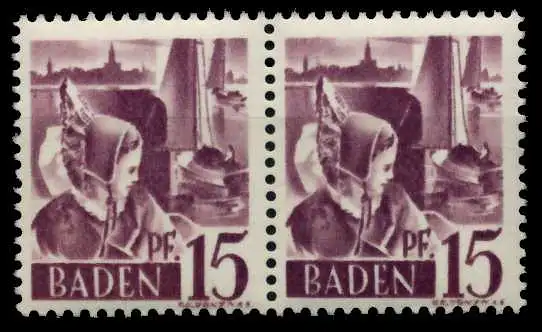 15 Pfg Freimarken Persönlichkeiten und Ansichten aus Baden 1. Ausgabe, waagerechtes Typenpaar