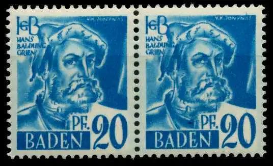 20 Pfg Freimarken Persönlichkeiten und Ansichten aus Baden 1. Ausgabe, waagerechtes Typenpaar