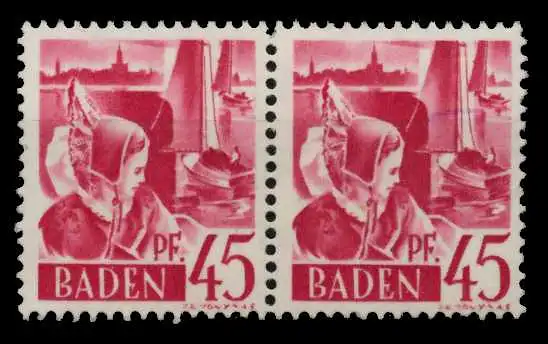 45 Pfg Freimarken Persönlichkeiten und Ansichten aus Baden 1. Ausgabe, waagerechtes Typenpaar Type I und II