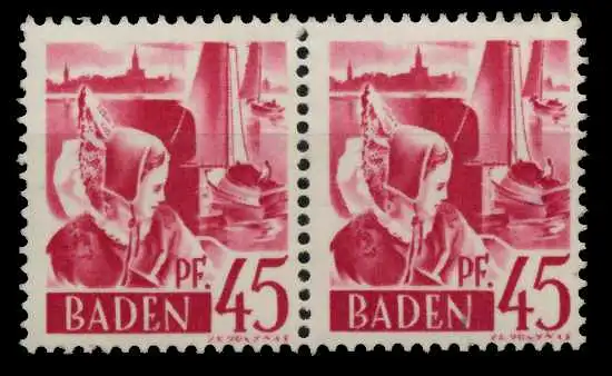 45 Pfg Freimarken Persönlichkeiten und Ansichten aus Baden 1. Ausgabe, waagerechtes Typenpaar Type I und II