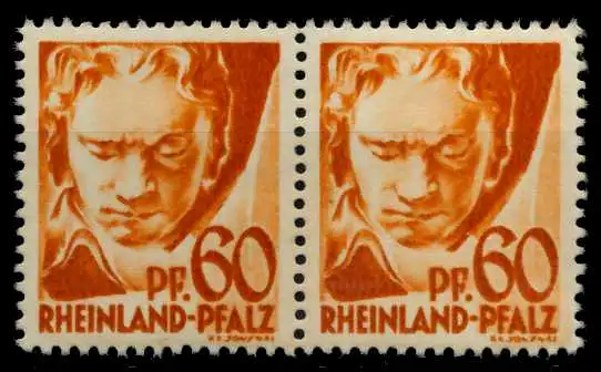 60 Pfg Freimarken Persönlichkeiten und Ansichten aus Rheinland-Pfalz 1. Ausgabe, waagerechtes Typenpaar Type V und IV