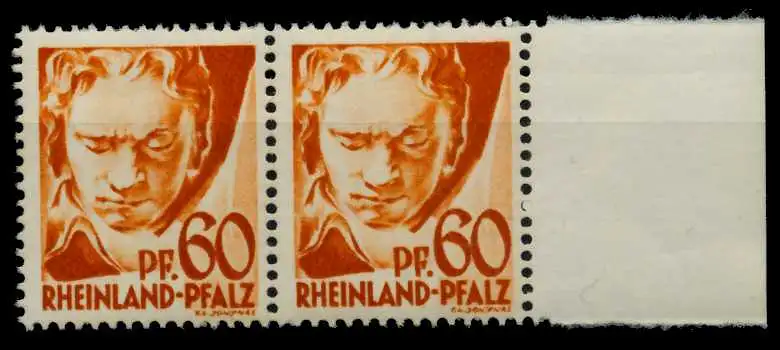 60 Pfg Freimarken Persönlichkeiten und Ansichten aus Rheinland-Pfalz 1. Ausgabe, waagerechtes Typenpaar Reihe 9+10 = Type V und IV, vom rechten Bogenrand
