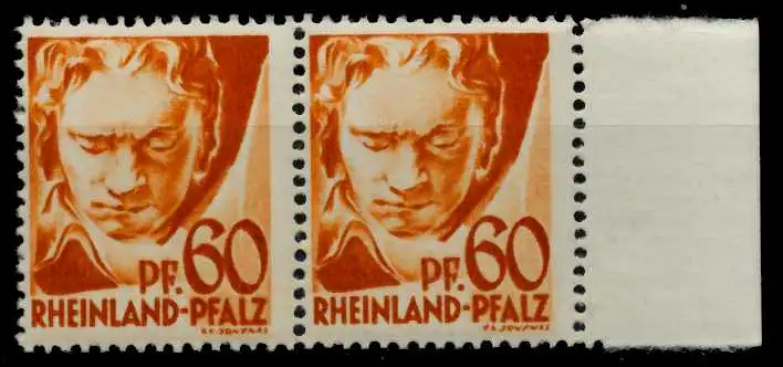 60 Pfg Freimarken Persönlichkeiten und Ansichten aus Rheinland-Pfalz 1. Ausgabe, waagerechtes Typenpaar aus Reihe 9+10 / Type V und IV, vom rechten Bpgenrand