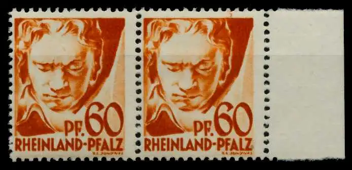 60 Pfg Freimarken Persönlichkeiten und Ansichten aus Rheinland-Pfalz 1. Ausgabe, waagerechtes Typenpaar aus Reihe 9+10 / Type V und IV, vom rechten Bpgenrand
