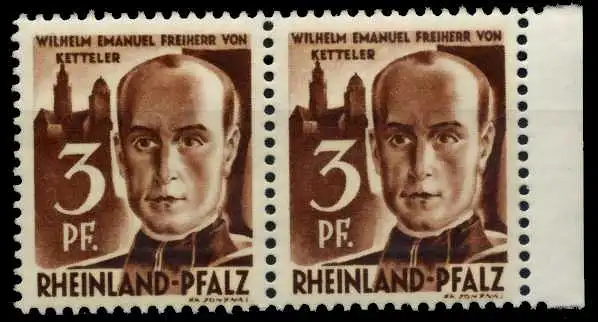 3 Pfg Freimarken Persönlichkeiten und Ansichten aus Rheinland-Pfalz 1. Ausgabe, waagerechtes Typenpaar