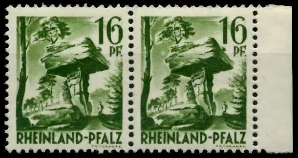 16 Pfg Freimarken Persönlichkeiten und Ansichten aus Rheinland-Pfalz 1. Ausgabe, waagerechtes Typenpaar mit Type I und II