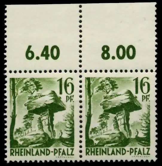 16 Pfg Freimarken Persönlichkeiten und Ansichten aus Rheinland-Pfalz 1. Ausgabe, waagerechtes Typenpaar mit Type I und II