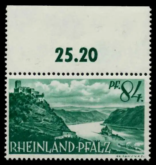 84 Pfg Freimarken Persönlichkeiten und Ansichten aus Rheinland-Pfalz 1. Ausgabe, im Oberrand rückseitig einige Haftpunkte