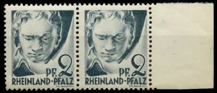 2 Pfg Freimarken Persönlichkeiten und Ansichten aus Rheinland-Pfalz 1. Ausgabe, waagerechtes Typenpaar, Type I und II