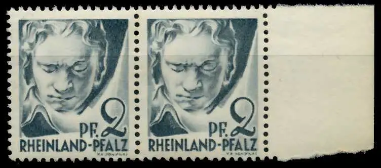2 Pfg Freimarken Persönlichkeiten und Ansichten aus Rheinland-Pfalz 1. Ausgabe, waagerechtes Typenpaar, Type I und II