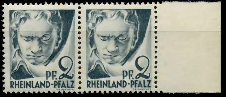 2 Pfg Freimarken Persönlichkeiten und Ansichten aus Rheinland-Pfalz 1. Ausgabe, waagerechtes Typenpaar, Type I und II