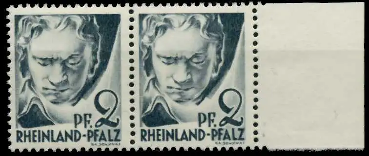 2 Pfg Freimarken Persönlichkeiten und Ansichten aus Rheinland-Pfalz 1. Ausgabe, waagerechtes Typenpaar, Type I und II