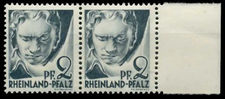 2 Pfg Freimarken Persönlichkeiten und Ansichten aus Rheinland-Pfalz 1. Ausgabe, waagerechtes Typenpaar, Type I und II