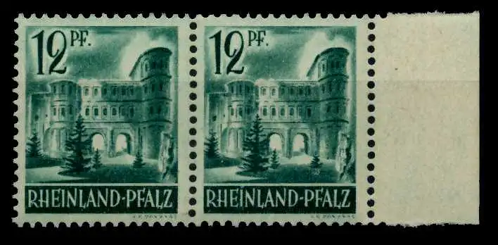 12 Pfg Freimarken Persönlichkeiten und Ansichten aus Rheinland-Pfalz 1. Ausgabe, waagerechtes Typenpaar mit Type I und II