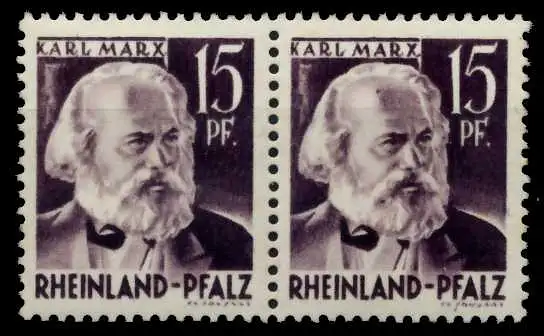 15 Pfg Freimarken Persönlichkeiten und Ansichten aus Rheinland-Pfalz 1. Ausgabe, waagerechtes Typenpaar mit Type I und II