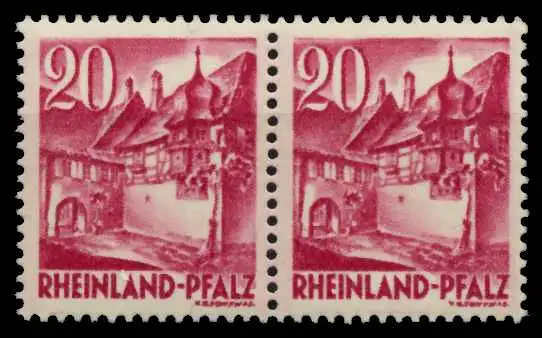 20 Pfg Freimarken Persönlichkeiten und Ansichten aus Rheinland-Pfalz, waagerechtes Typenpaar (III u. IV)